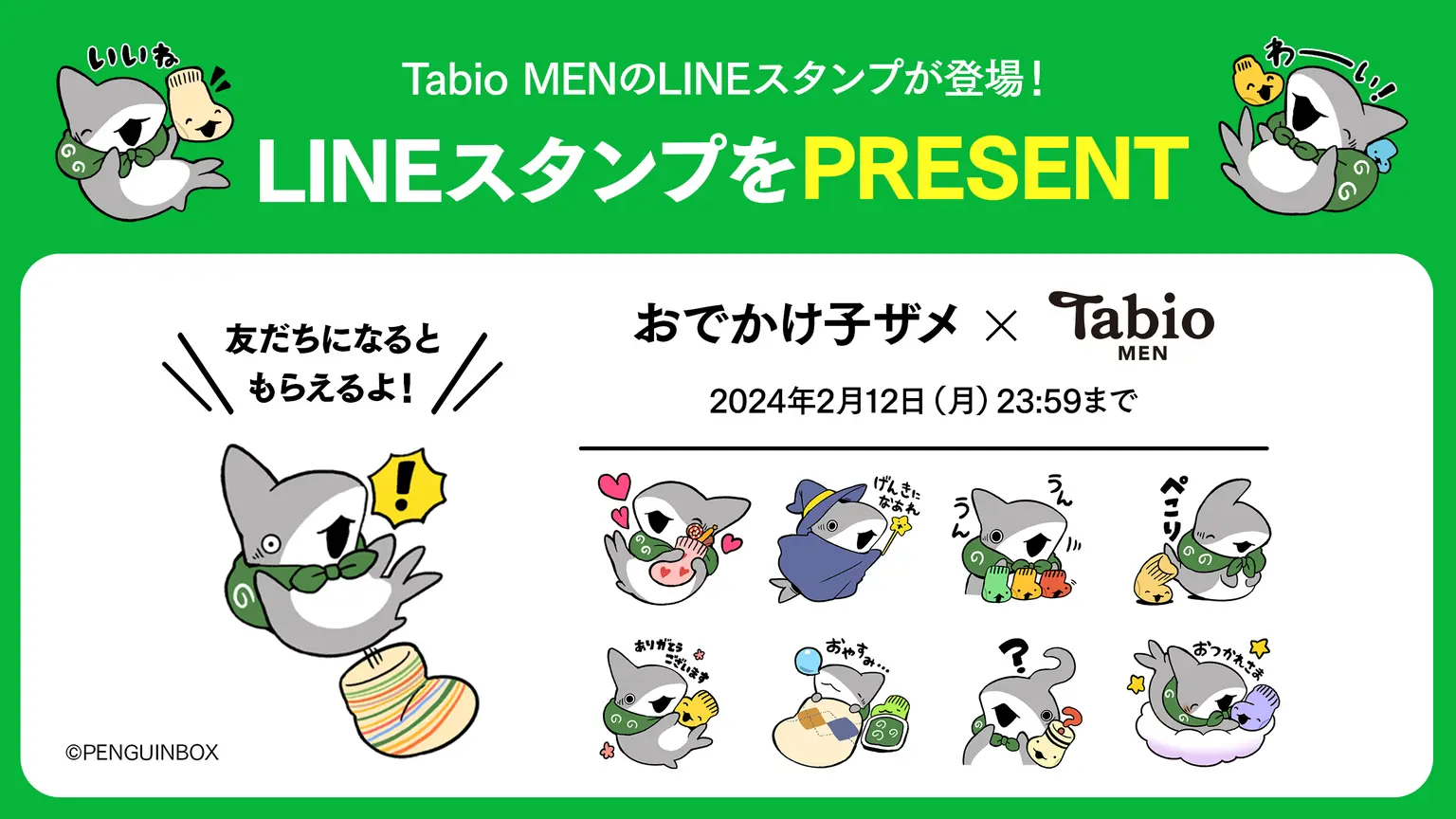 「おでかけ子ザメ」シリーズとTabio MENのコラボスタンプが登場!